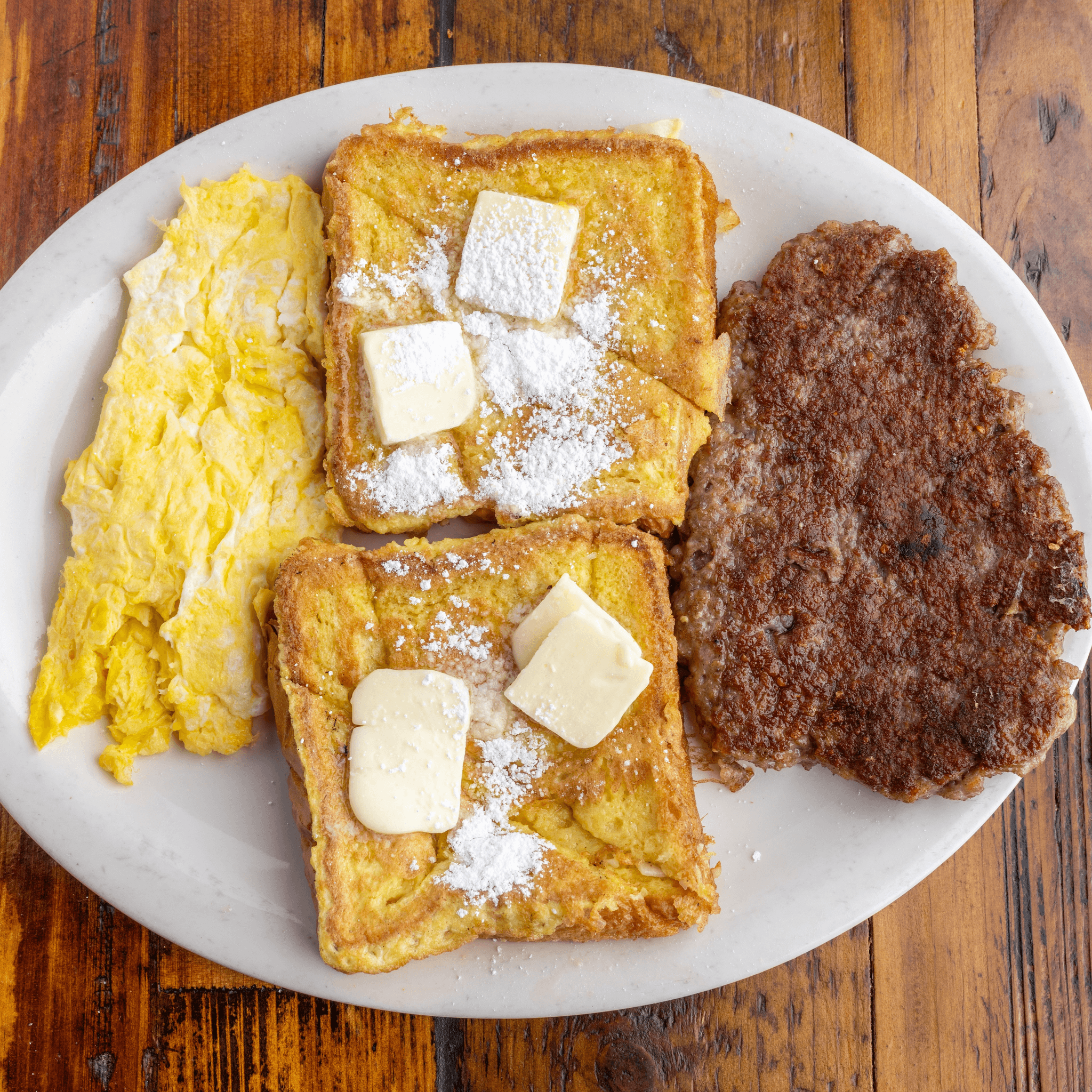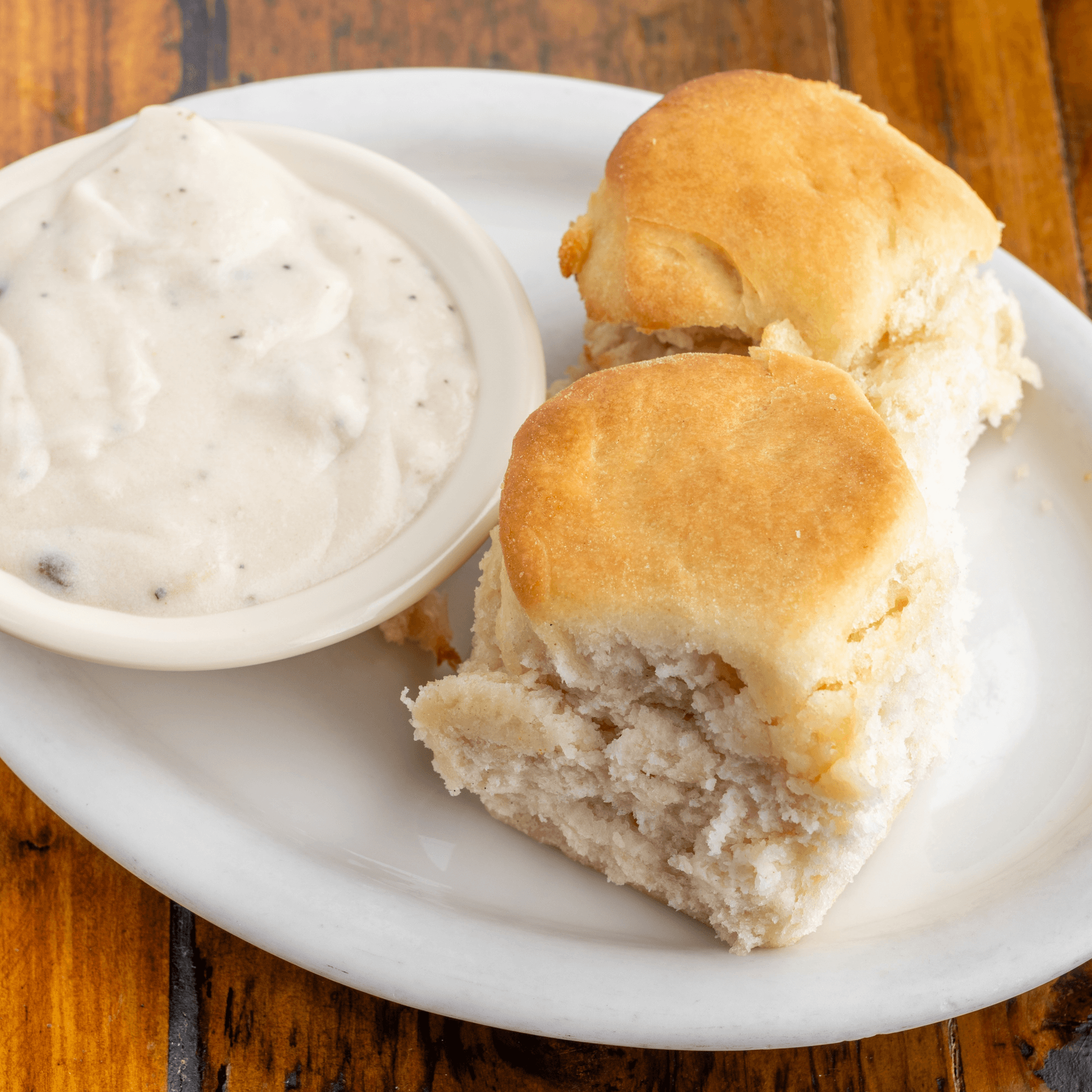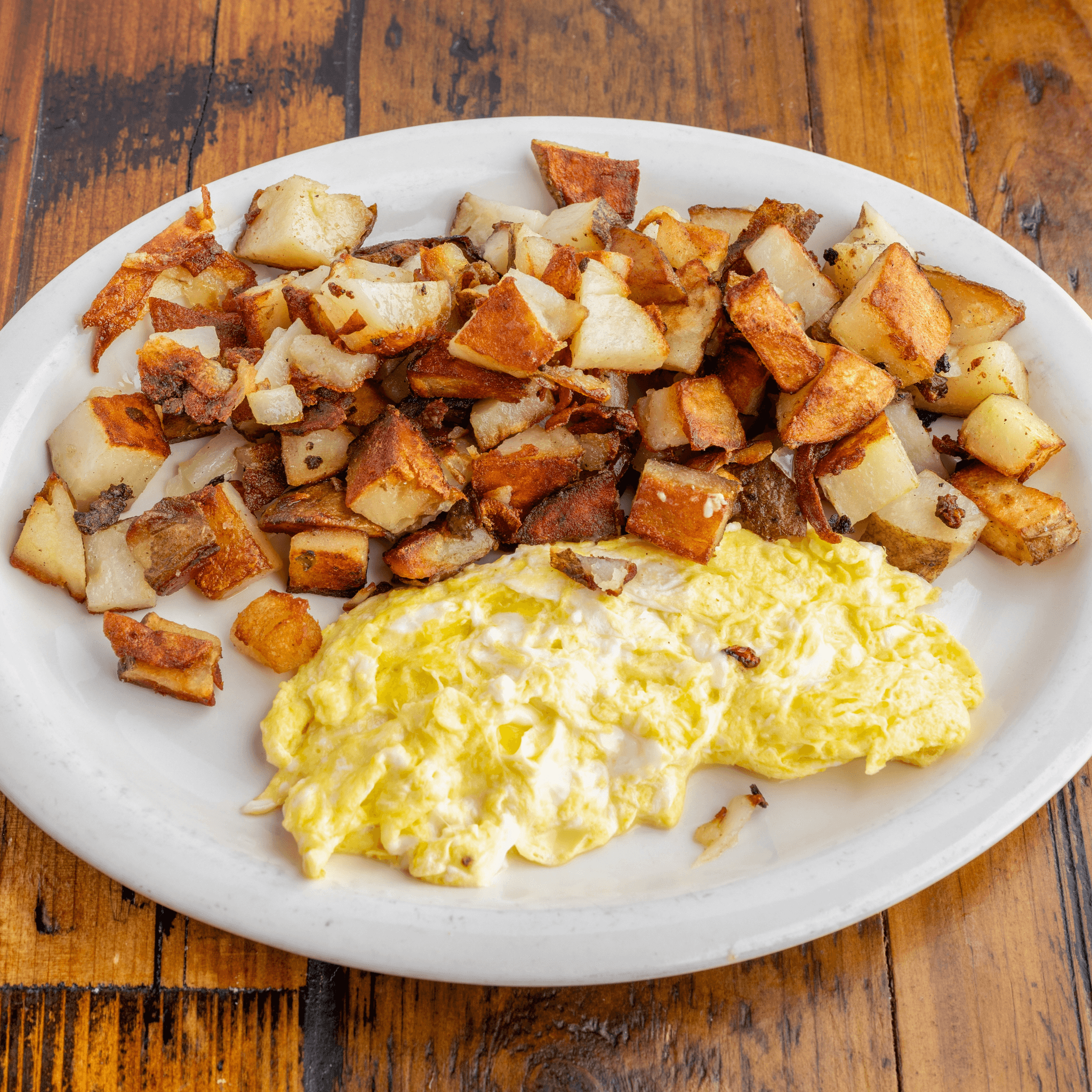 Includes hash browns or home fries, two eggs, and your choice of biscuits and gravy or toast.